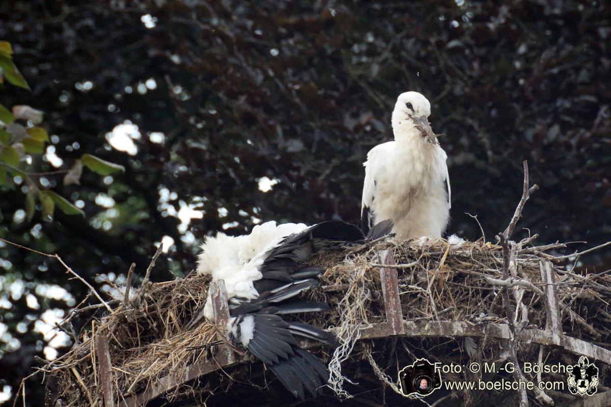 Knapp 20 Nestauswürfe sind ihm in den vergangenen Tagen bereits bekannt geworden, nur zwei Tiere waren überlebensfähig. Das ist der Mestliner Storch und ein weiterer, der aus einem Nest in Zepelin bei Bützow stammt. Beide schmiegen sich im Nest aneinander und suchen scheinbar gegenseitig die Nestwärme. Die beiden von ihren Eltern ausgestoßenen Tiere sind jetzt Stiefgeschwister und tun fast so, als wären sie schon immer zusammen gewesen.